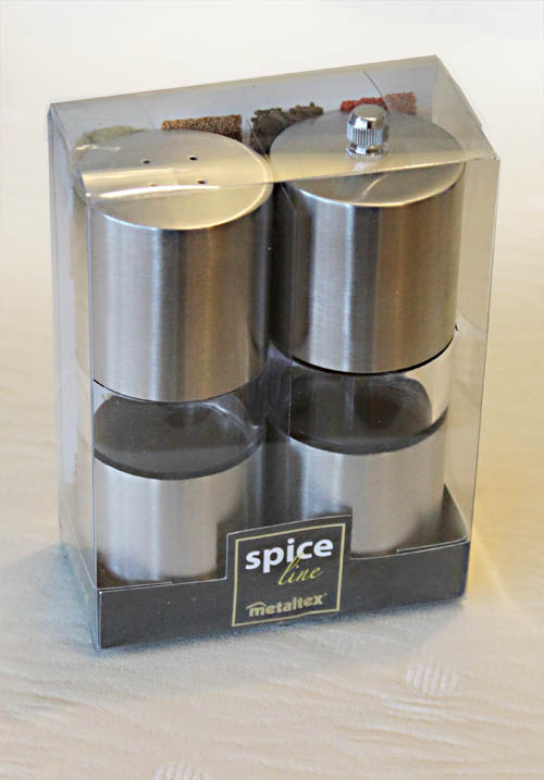 ![]() >Mausteikko Suolasirotin ja pippuri-mylly. Tyylikäs mausteikko joka sopii edustus-keittiöihin. Osat akrylia ja metallia.